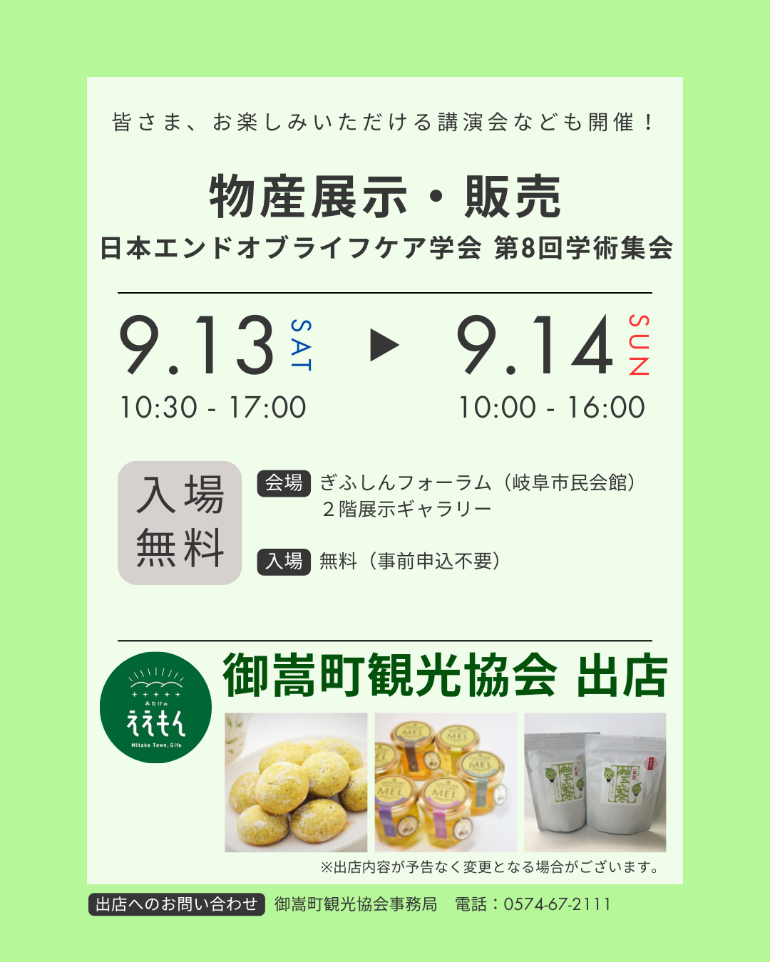 【出店終了】物産展示・販売(日本エンドオブライフケア学会)